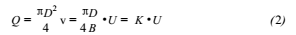 式(1)說明,導體在磁場內作切割磁力線運動,導體兩端產生的感應電動勢的大小與磁感應強度B成正比,與導體的長度D成正比,與導體運動的速度v成正比。由式(2)可知液體的體積流量與感應電動勢成正比,這就是測量除鹽水流量用流量計的設計原理。