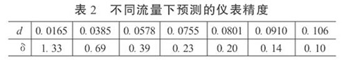 3.直管段長度和生物柴油流量計精度的初步預測在工程設計中,根據流體性質、流量和雷諾數確定α和d值。這樣,按照式(5)就可以依不同的流量計精度要求,對直管段長度進行初步預測,或確定直管段長度后,對流量計的精度做初步預測。當δ= 0.2%時,不同流量下所需直管段長度見表1。