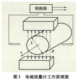 空調(diào)水流量計量表是利用法拉*電磁感應(yīng)定律測量,如圖1所示,用于測量電極與運動的流體構(gòu)成的回路中產(chǎn)生的電參數(shù),并根據(jù)公式換算成流體速度,再測量流通截面液位高度得到流通面積,兩者相乘得到所測流量。