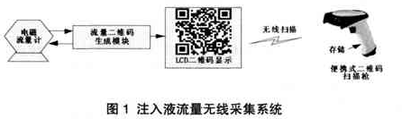 二維碼生成模塊定時向硝酸流量計發送采集指令,后者收到指令后發送流量數據。