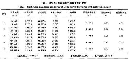 由表1和表2的實際標定數據可知,在量程比大于1:10的情況下,用不斷流氫氣流量計測量氣體或液體介質時,基本誤差及重復性均能達到中華人民共和國機械行業標準JB/T9249一1999《渦街流量傳感器》[’1中所規定的精度要求。