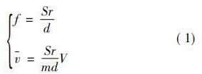 式中: 珋v 為旋渦發生體兩側平均流速,m / s; d 為旋渦發生體特征寬度,m; Sr 為斯特勞哈爾常數,無量綱常數; V 為管道流體平均流速,m / s; m 為旋渦發生體兩側弓形面積與管道截面積之比。 如,對于寬度為 d 的三角柱,有: