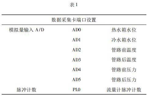 數據采集系統由工控機、煤油流量計以及數據采集卡組成。 4000 次冷熱沖擊試驗要求在在*大流量 qs 條件下運行,對流量數據的采集用到煤油流量計及數據采集卡。煤油流量計采集管路流量,數據采集卡將煤油流量計采集到的數據反饋給工控機系統。過程中,試驗管路水溫以及水箱水位的采集控制也是通過數據采集卡反饋給系統控制。試驗過程用到的數據采集卡采用研華生產的PCI - 1711。PCI - 1711 是一款多功能 PCI 總線數據采集卡,具有 16 路單端模擬量輸入功能、2 路 12位模擬量輸出功能、16 路數字輸入和 16 路數字輸出功能、計數器功能等。為保證冷熱沖擊試驗結果的準確性,嚴要求嚴格控制管路流量以及管路壓力。因此,管路設置前后管路溫度、冷熱水箱水位以及管路壓力的采集,管路流量根據煤油流量計脈沖計數進行采集,其數據采集卡端口設置如表 1 所示。