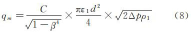 式中:C--流出系數(shù);β--直徑比,β=d/D;D--管道內(nèi)徑,m;d--工作條件下節(jié)流件的開(kāi)孔直徑,m;ε1--節(jié)流件正端取壓口平面上的可膨脹性系數(shù);ρ1--節(jié)流件正端取壓口平面上的流體密度,kg/m3。