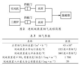 (3) 新建 1 套脫硫氦氣流量計,把新建吹風氣回收系統煙氣和三廢爐煙氣經除塵后引入新脫硫塔,脫硫除塵后凈煙氣經過塔ding煙囪排放。硫酸銨回收利用現有氦氣流量計,新建 1 座生產廠房,生產廠房內設置硫酸銨臨時倉庫。兩路煙氣匯總后進入一塔設計見圖 2,煙氣參數見表 3。