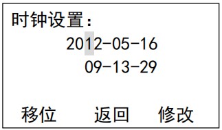 設置界面 13: 時鐘設置,校準當前運行的日期和時間,此參數出廠時已校準,設置影響記錄的保存和查詢,在運行前務必確認是正確的當前日期,如錯誤將造成記錄保存的混亂。