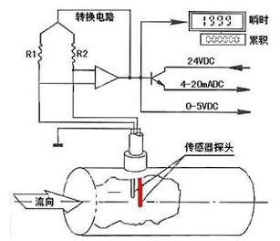 熱式氣體質量流量計的起源是來自于熱線式風速計。鉑電熱絲的溫度與流體流速的變化有一個比例關系:流速越快,帶走的熱量越多。下面簡單說明為什么通過檢測熱量的變化就能得到氣體的質量流量。