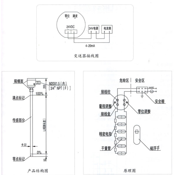 而且正確的接線要求是:正對正,負對負,這個在接線端子上都有清晰的標注。將磁浮球液位計配上報警開關,改為開關量遠傳出去,這時也可以接二次儀表,也可以直接接氣動泵閥,控制起動停止。連接方式肯定是一樣的。除正確的接線要求外,還應注意一些細節(jié)問題,如:磁性液位計在配線時應避開大容量變壓器、電機和干擾源,因為這些都會影響磁性液位計接線時的誤差。對某些防爆型的,為了保證防爆性能,因此必須有一定的配線規(guī)則。