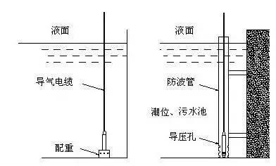 1、纜式投入式液位計(靜壓式水位計)通常投入直徑大于水位計直徑的的PVC管、鋼管,管道固定在水中,不同高度打若干小孔,以便水通暢進入管內。或者在底部加裝阻尼裝置,以過濾泥沙和消除動態壓力和波浪對測量的影響。
