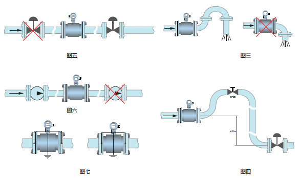為了改善渦流與流場畸變的影響,流量計安裝的前、后直管段長度有一定要求,否則會影響測量精度(也可安裝整流器,盡量避免在靠近調(diào)節(jié)閥和半開閥門之后安裝)。